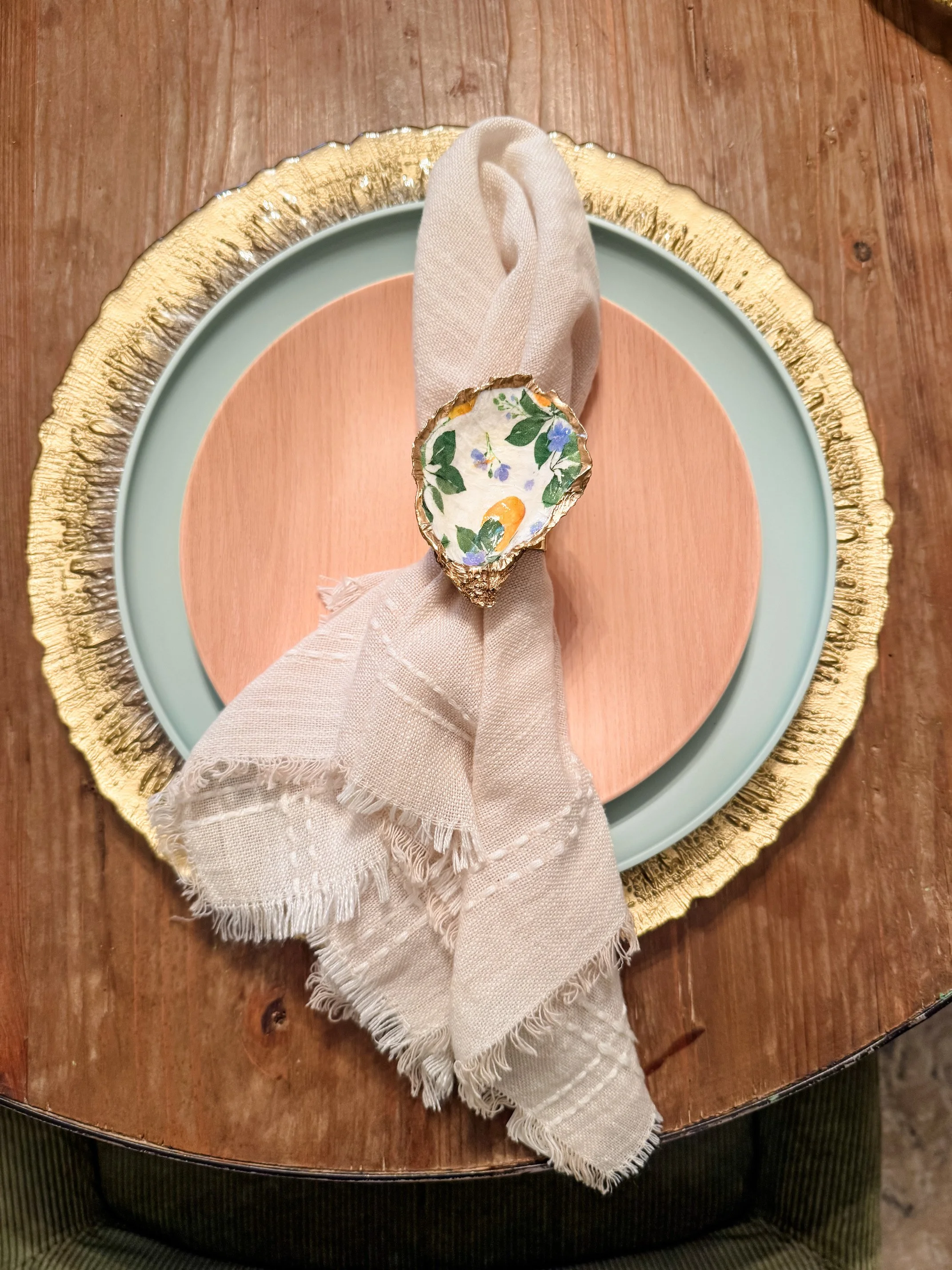 Luxe Beaded Shell Necklace $65.00 Luxury Gold Necklace $0.00 Oyster Shell Christmas Ornament $0.00 Napkin Rings with Decoupage Pattern - Set of 8 $120.00 Oyster Shell Candle Set $40.00 Napkin Rings - Golden Hour - Set of 4 $60.00 Napkin Rings with Decoupage Pattern - Set of 4 $80.00 Napkin Rings - Golden Hour - Set of 6 $80.00 Napkin Rings with Decoupage Pattern - Set of 6 $100.00 Signature Golden Hour Necklace (Short 16") $35.00 Signature Golden Hour Necklace (Long 28") $40.00 Sterling Silver Shell Necklace (Short 16") $45.00